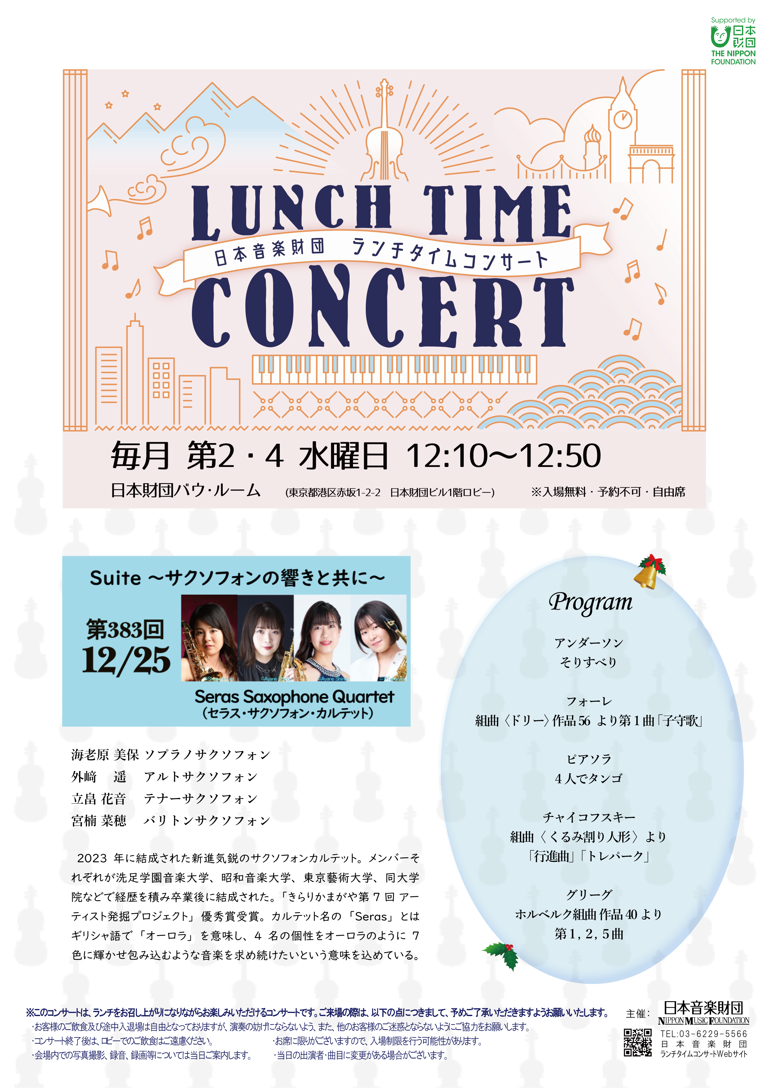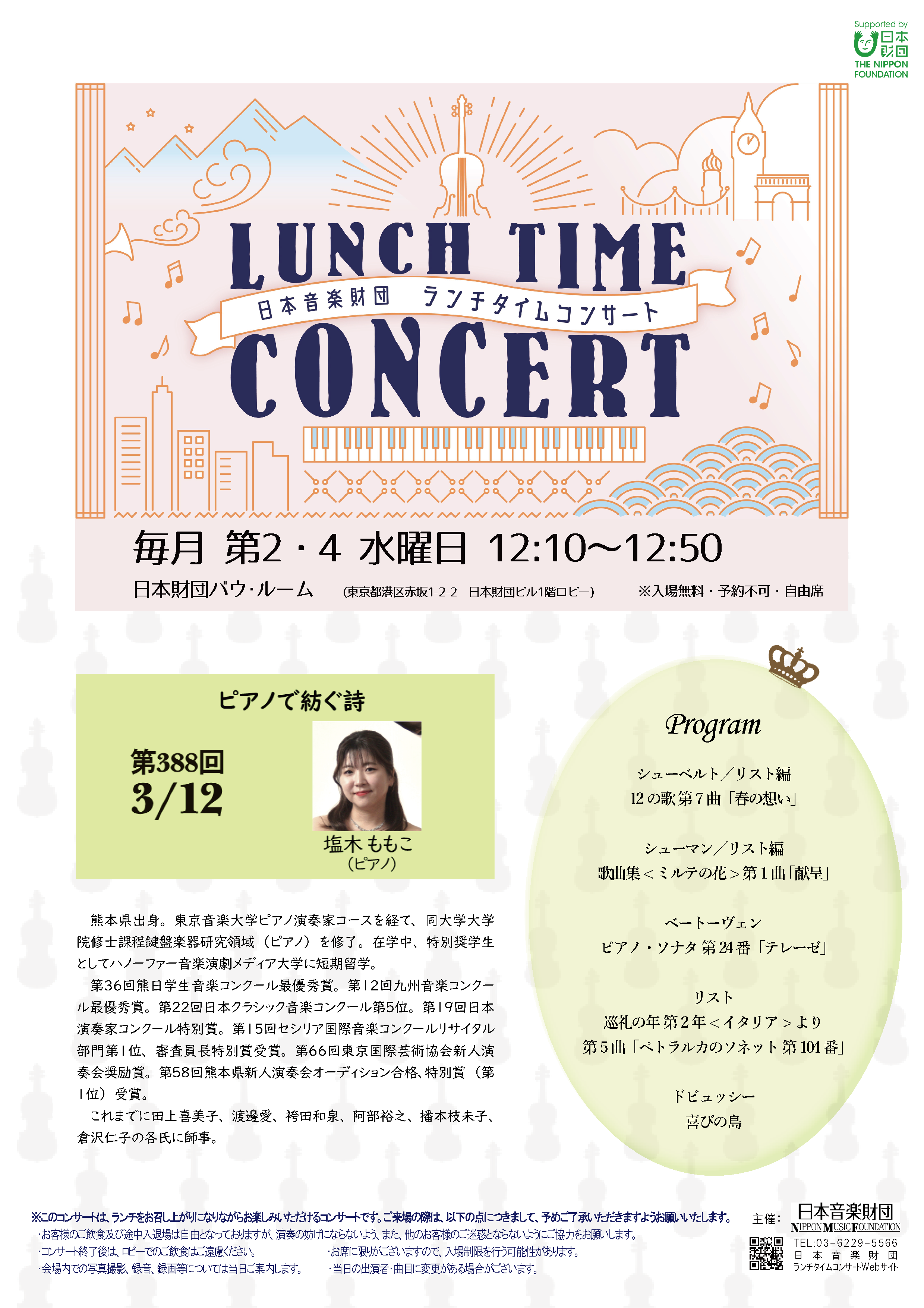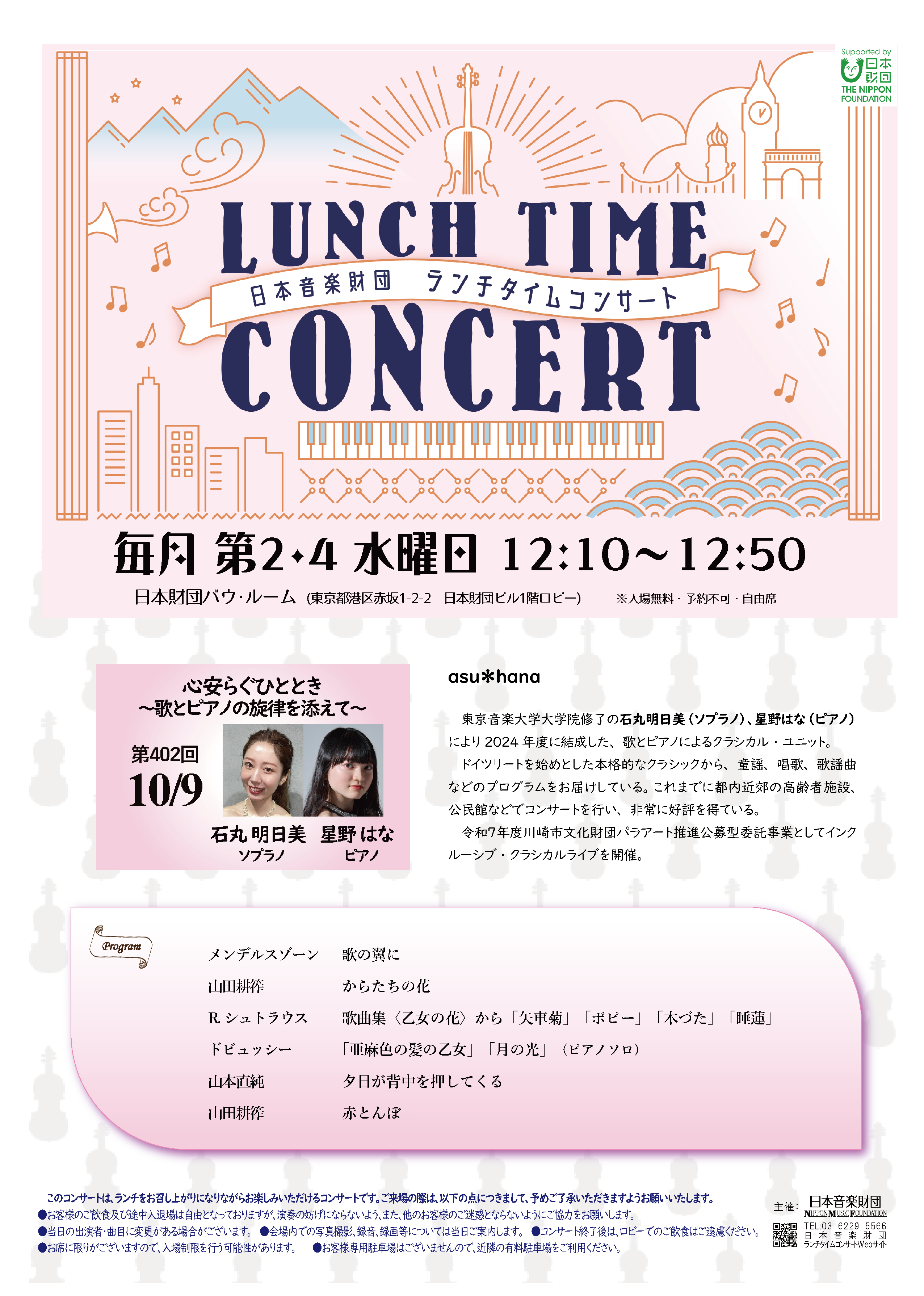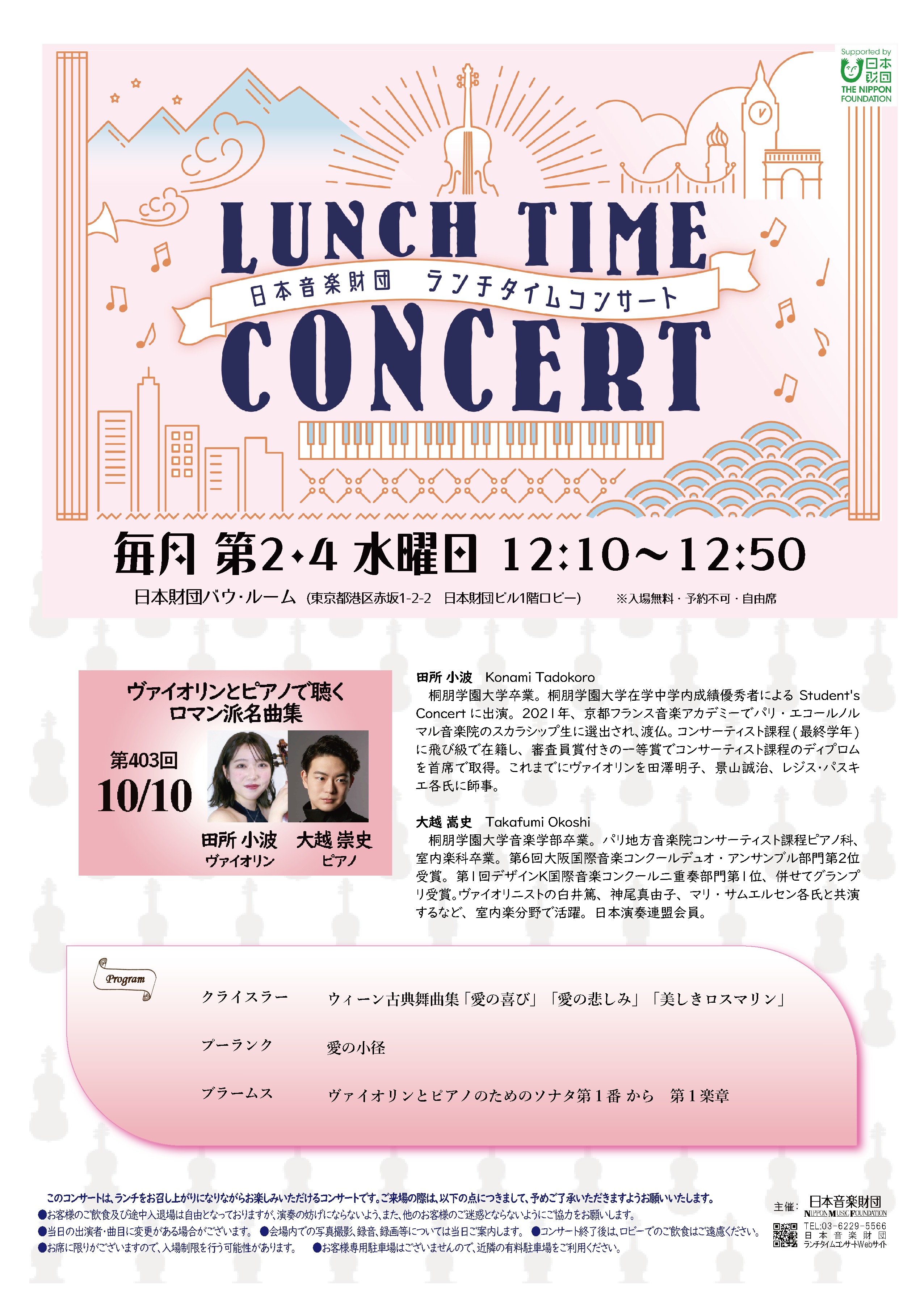 笹川音楽財団はランチタイムコンサートの出演者の募集をしています。詳しくはこちらからご確認ください。