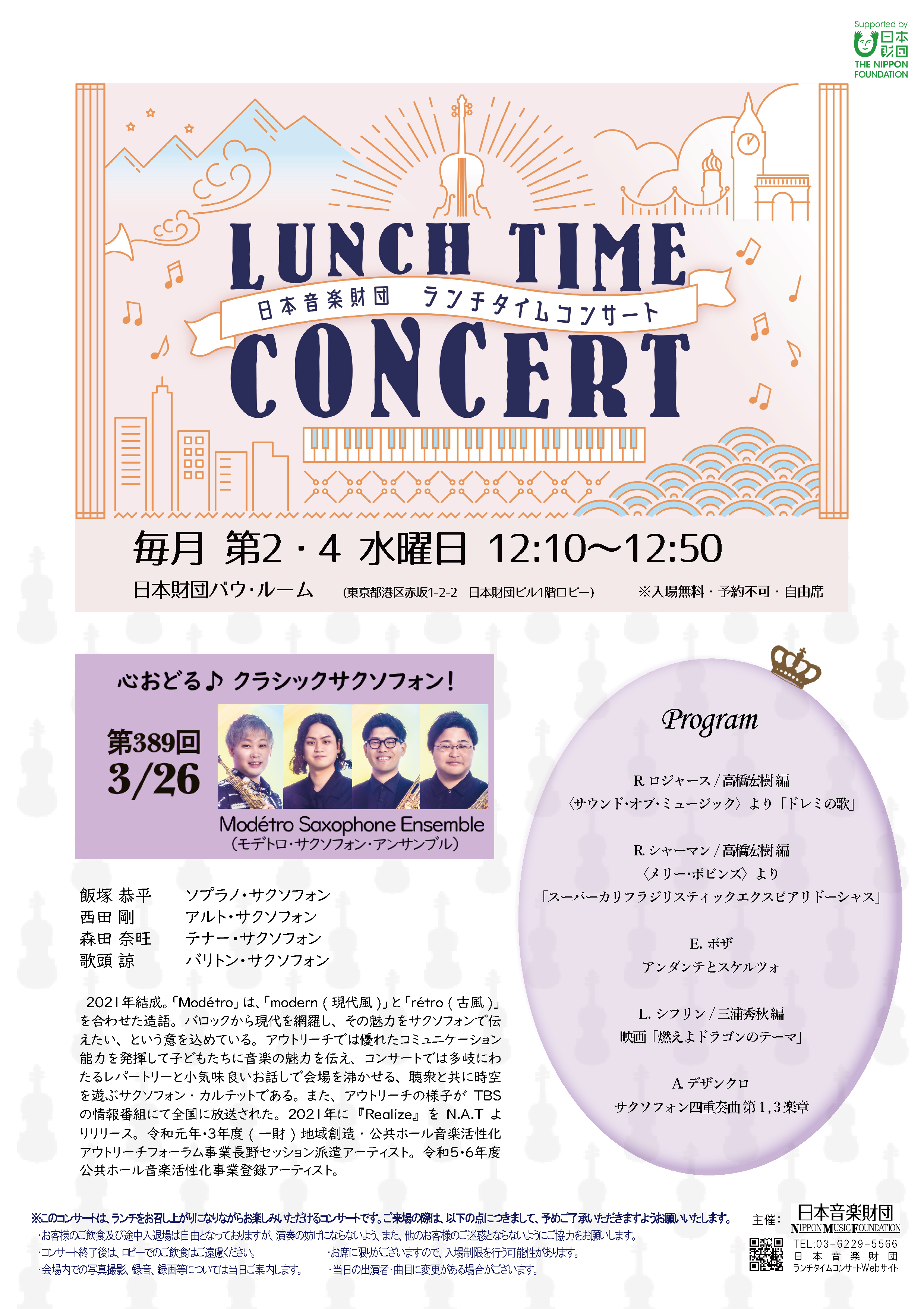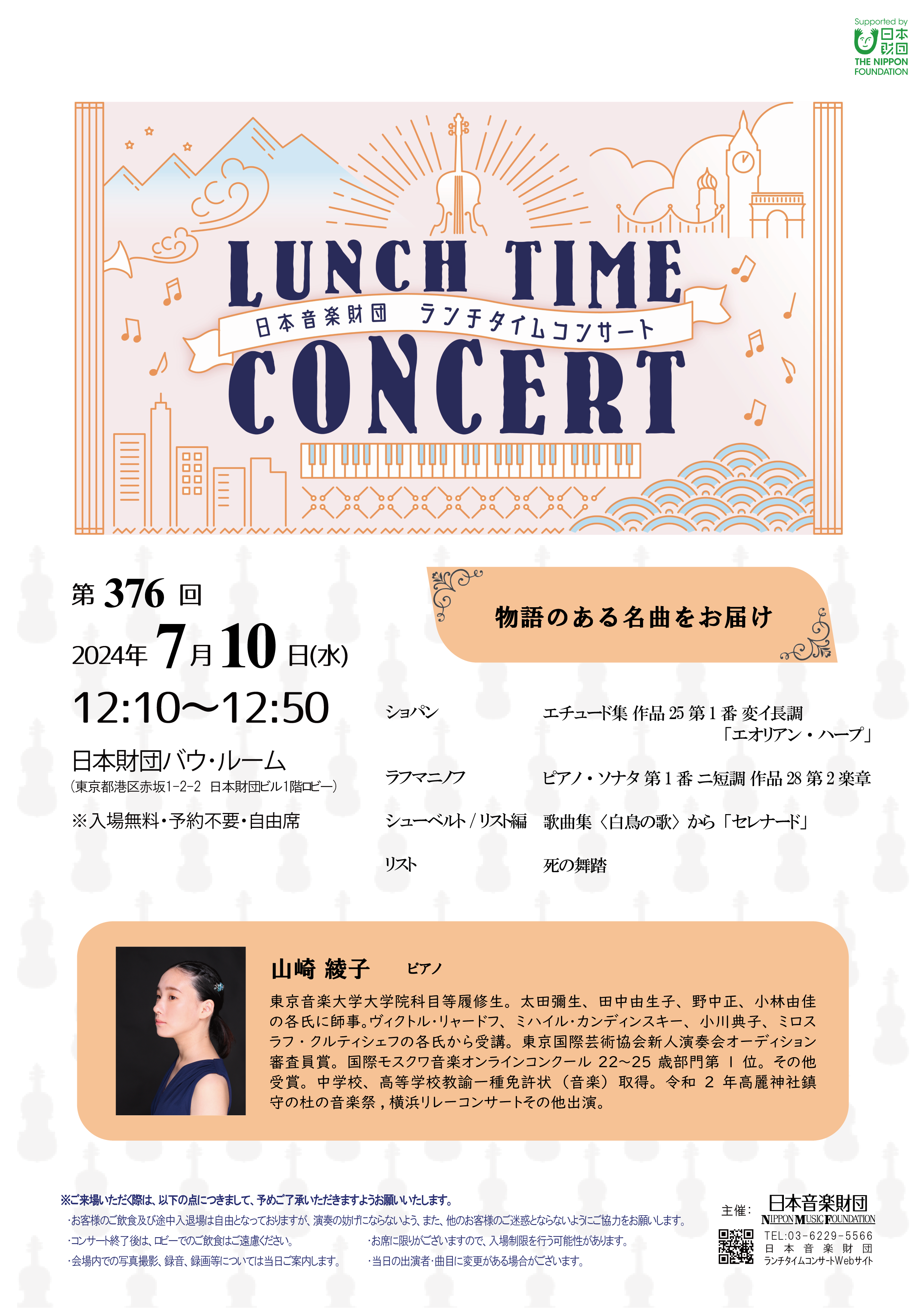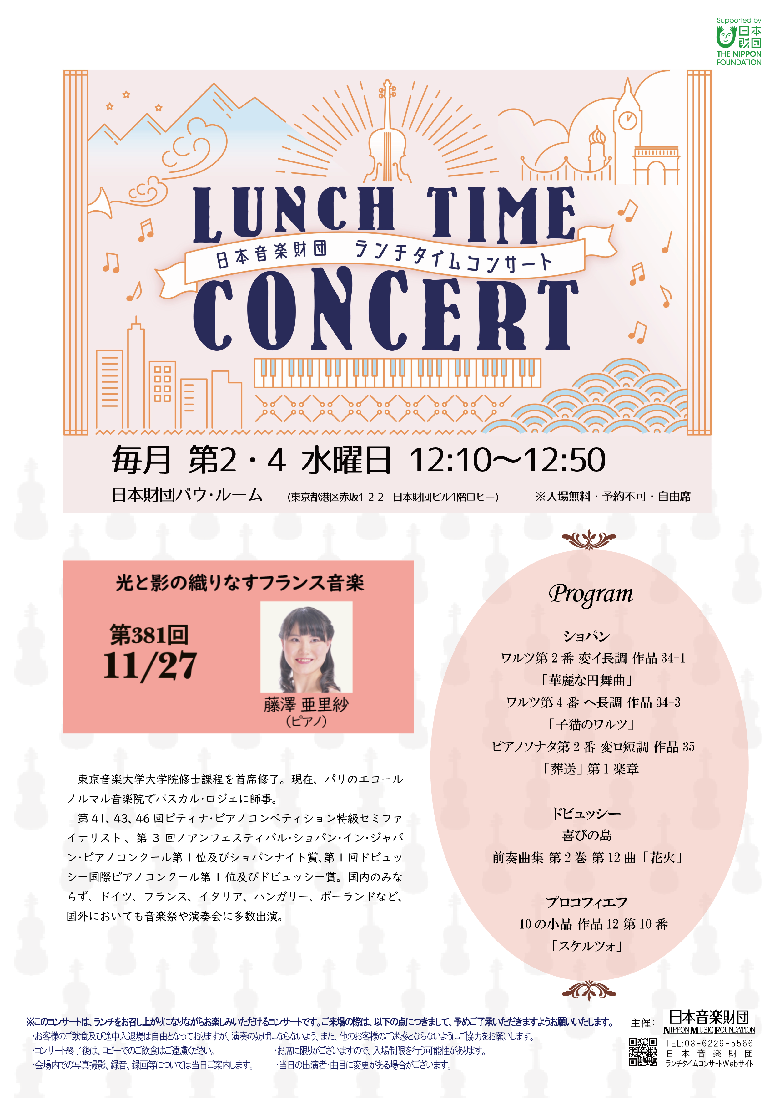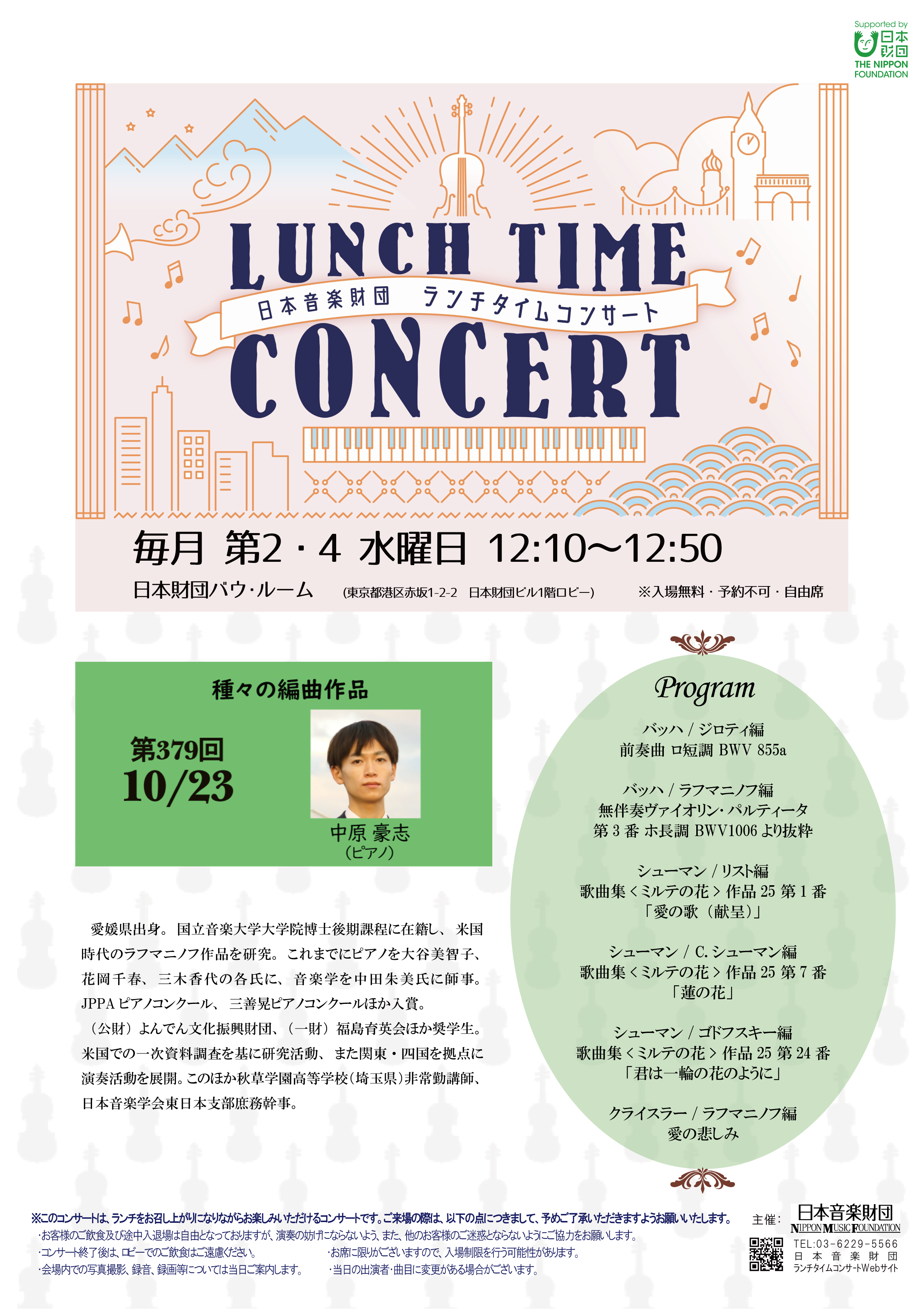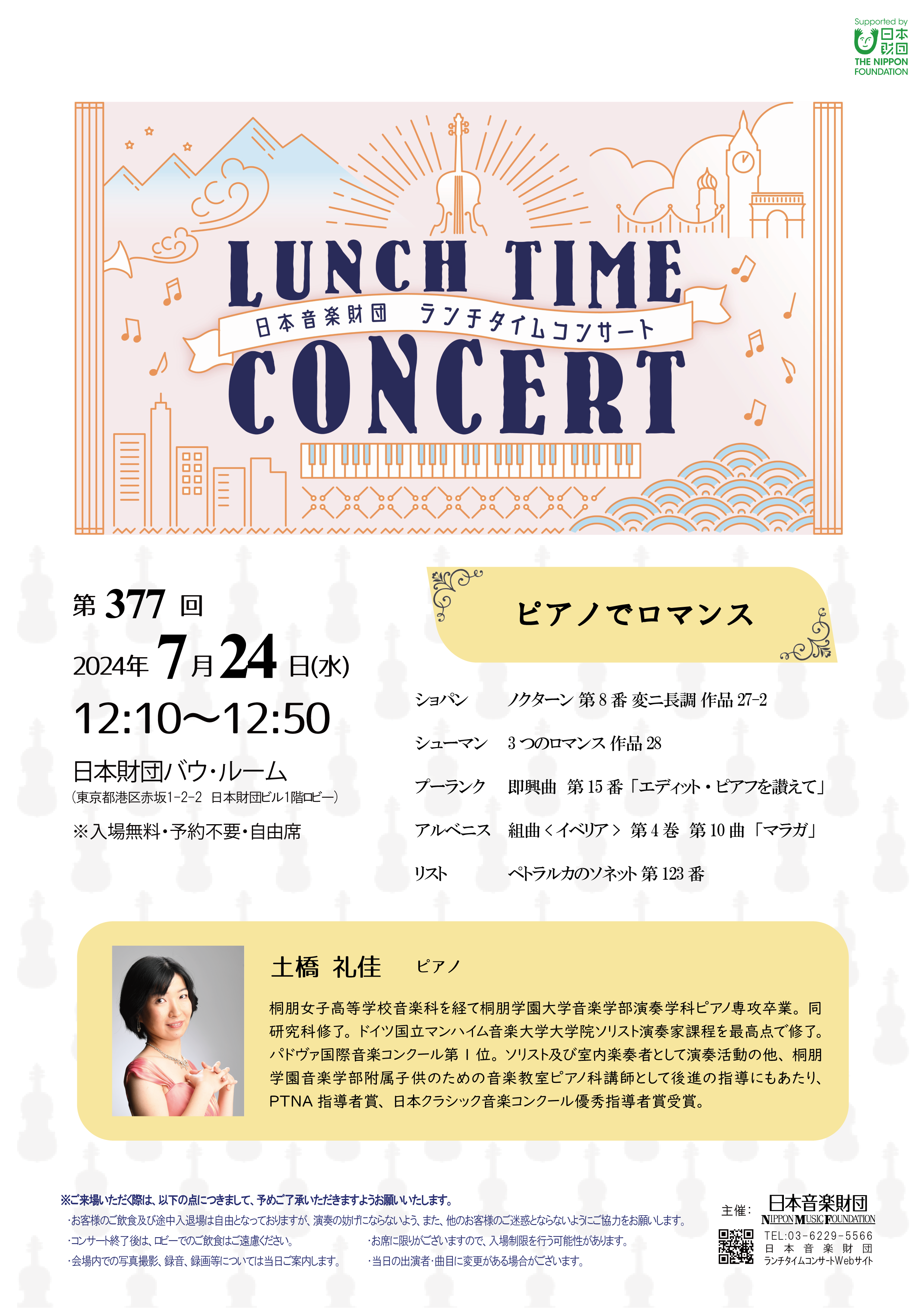 笹川音楽財団はランチタイムコンサートの出演者の募集をしています。詳しくはこちらからご確認ください。