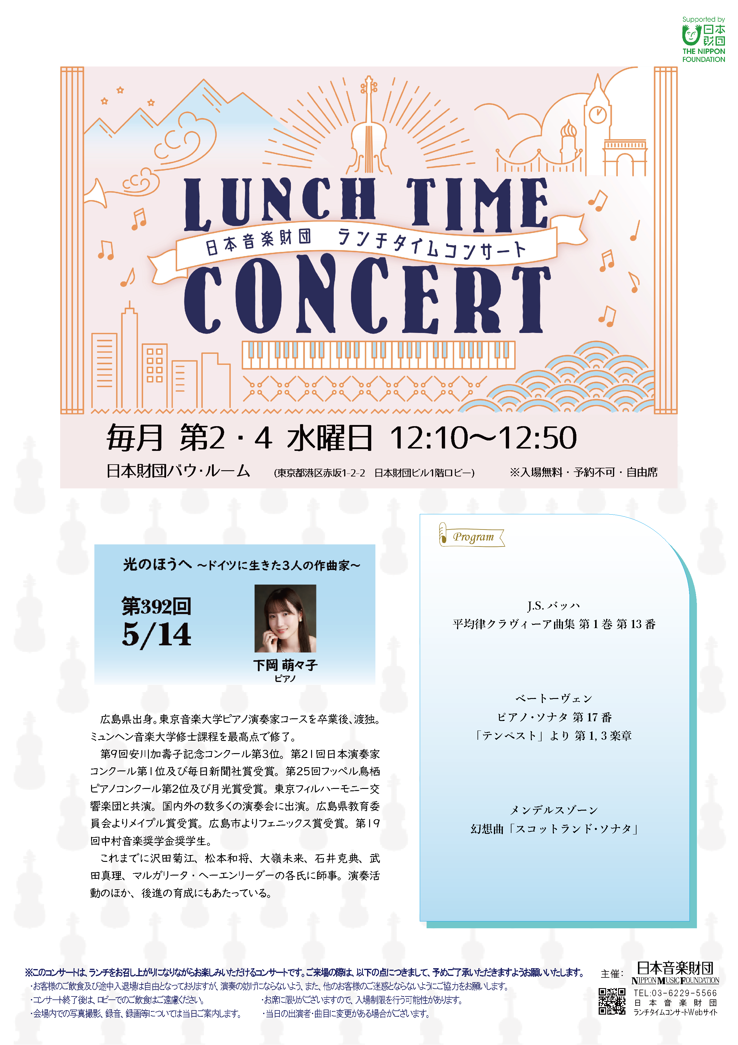 下岡 萌々子/ピアノ | 光のほうへ 〜ドイツに生きた3人の作曲家〜 |