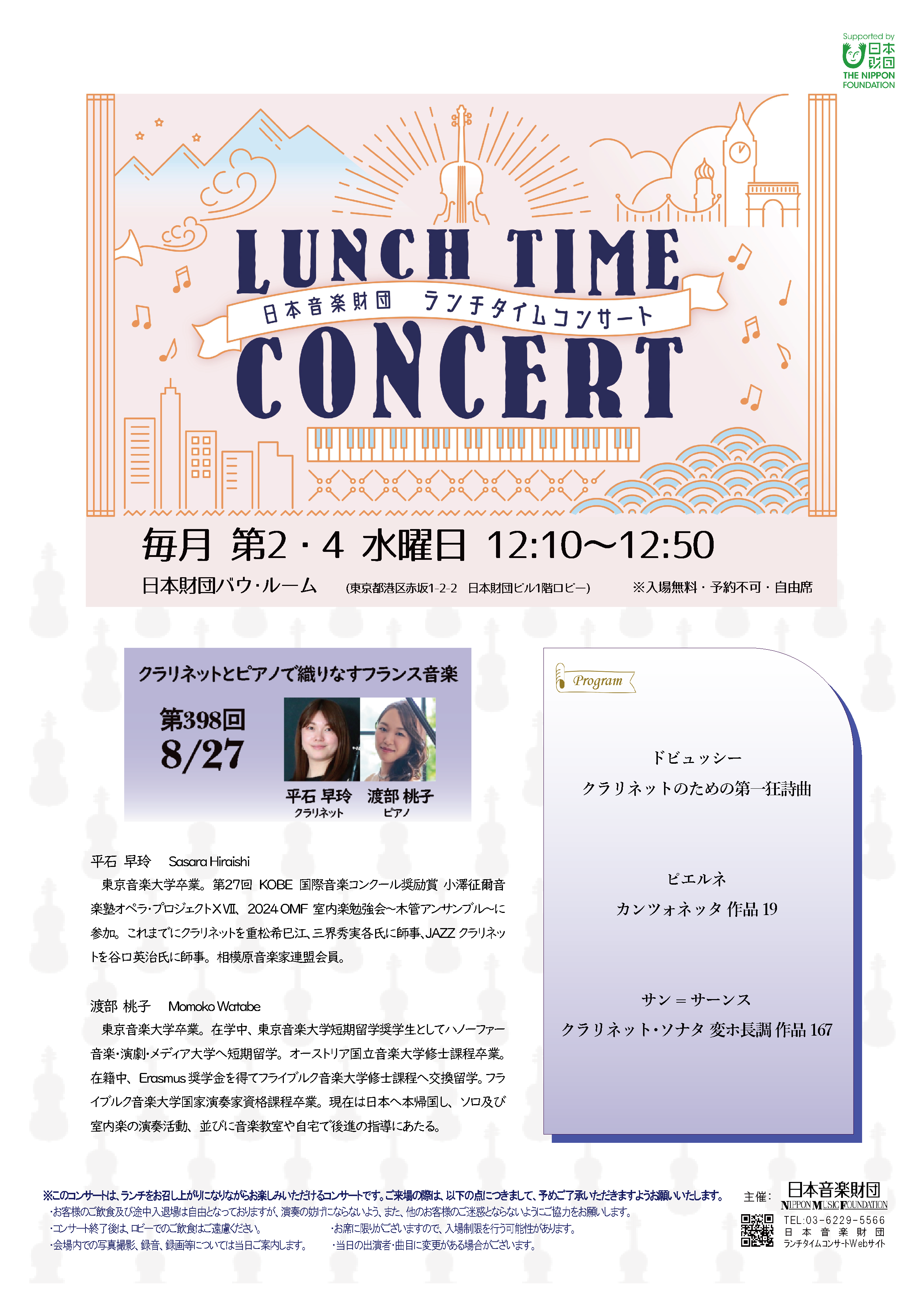 平石 早玲/クラリネット 渡部 桃子/ピアノ |