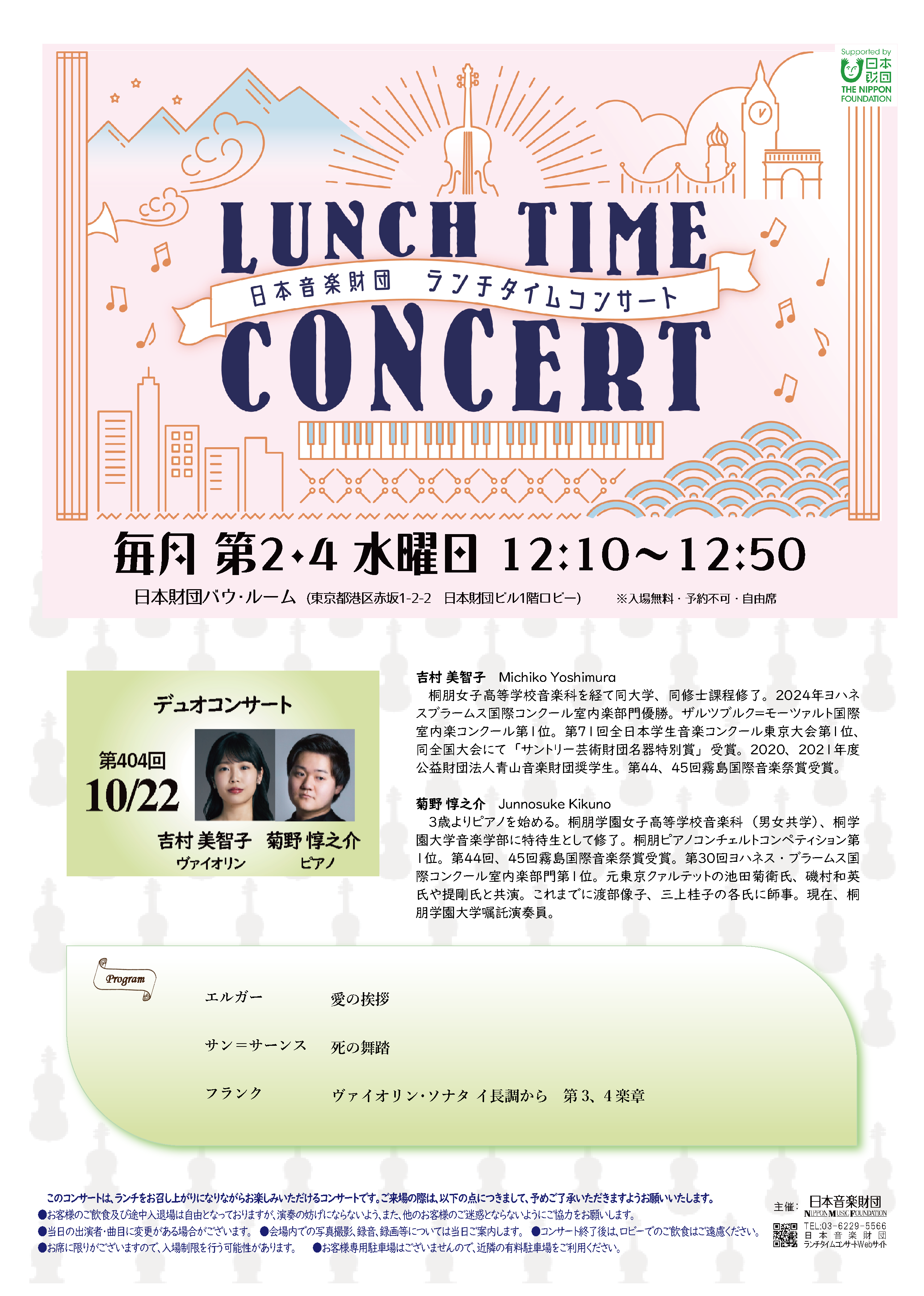 吉村 美智子/ヴァイオリン 菊野 惇之介/ピアノ |