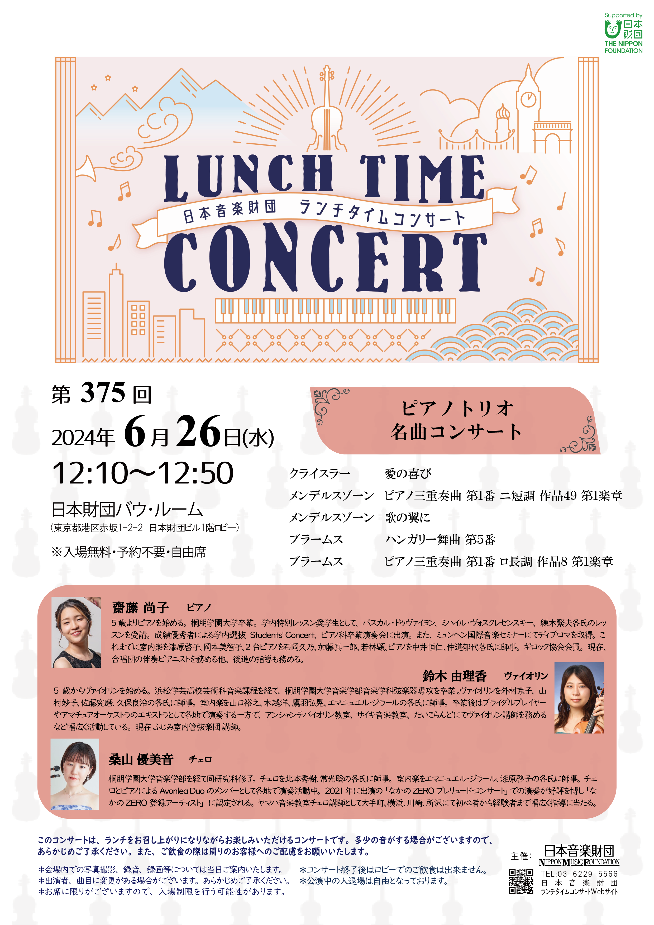 齋藤 尚子/ピアノ 鈴木 由理香/ヴァイオリン 桑山 優美音/チェロ |